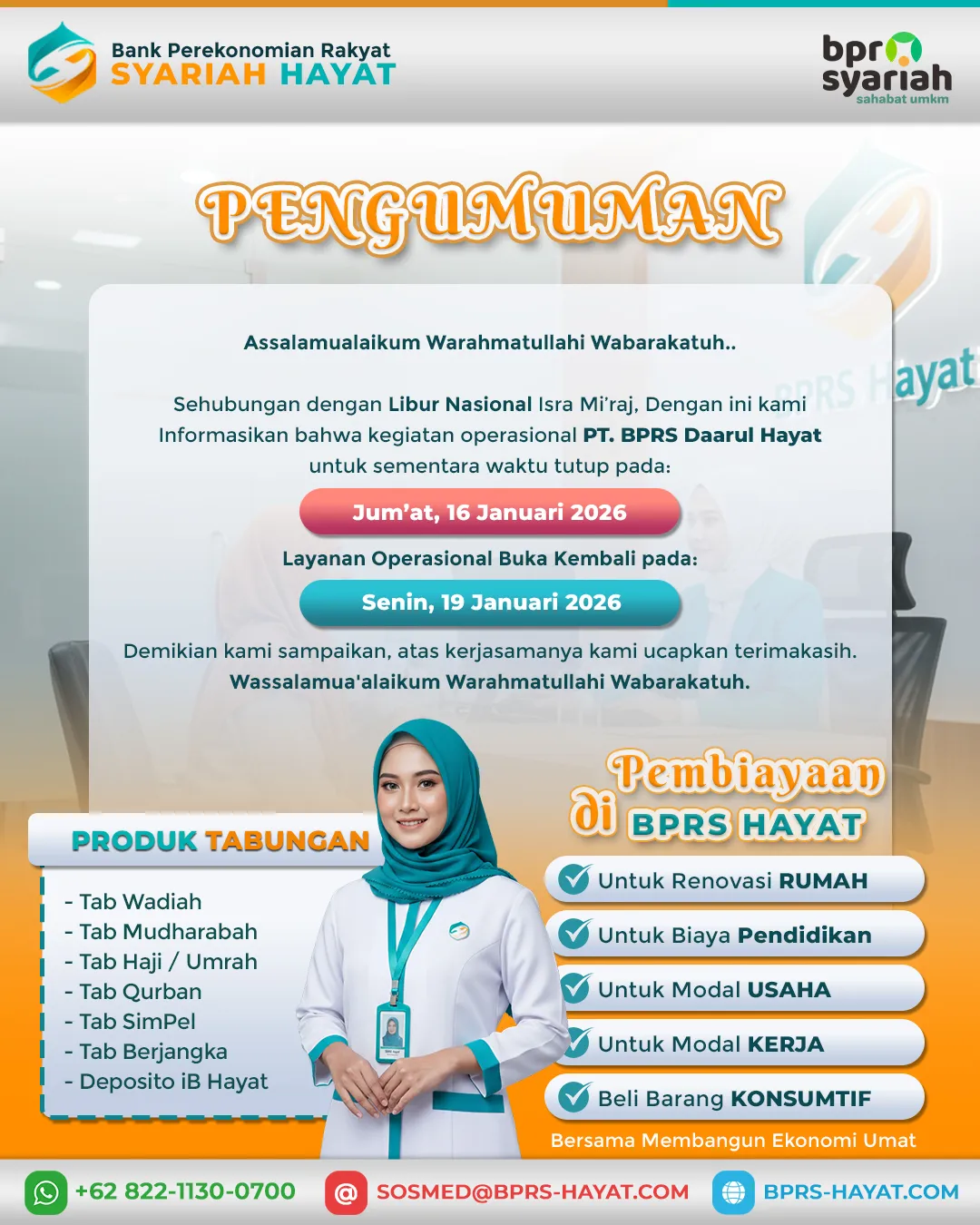 Jangan lewatkan promo eksklusif dan penawaran menarik dari BPRS Syariah Hayat.